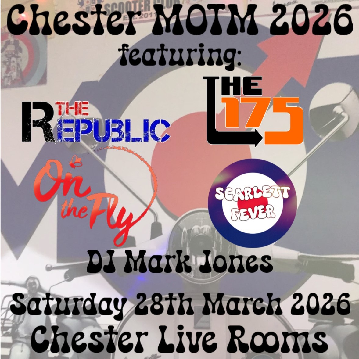 Featuring live bands, Scarlett Fever, 175, On The Fly and The Republic and DJ mark jones.